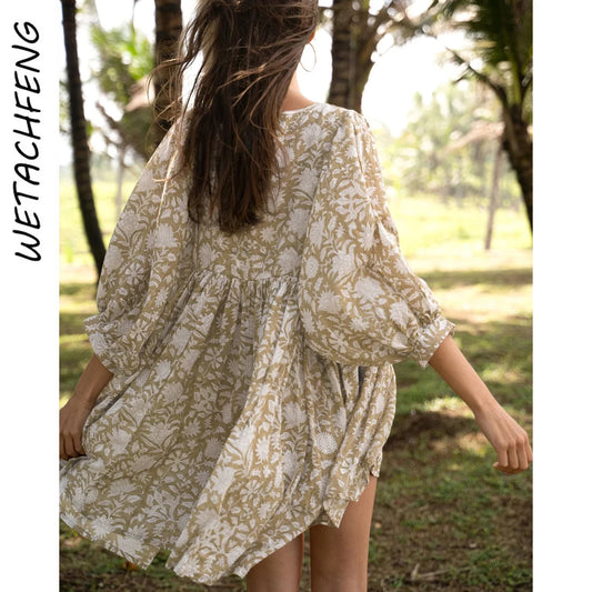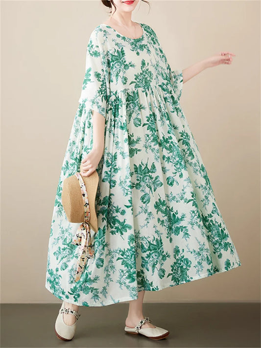 Oversized Boho Casual Loose Women Print Cotton Sun Dress