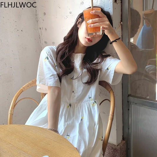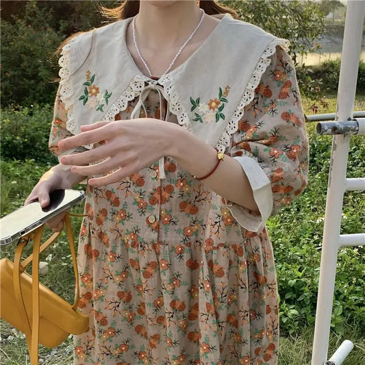 Loose Floral Cute Japanese Style Button Shirt Dress