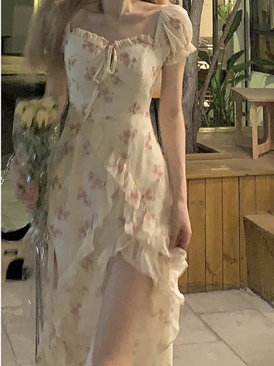 Summer Dress Vintage Lantern Sleeve Mid-Calf Sun Dress